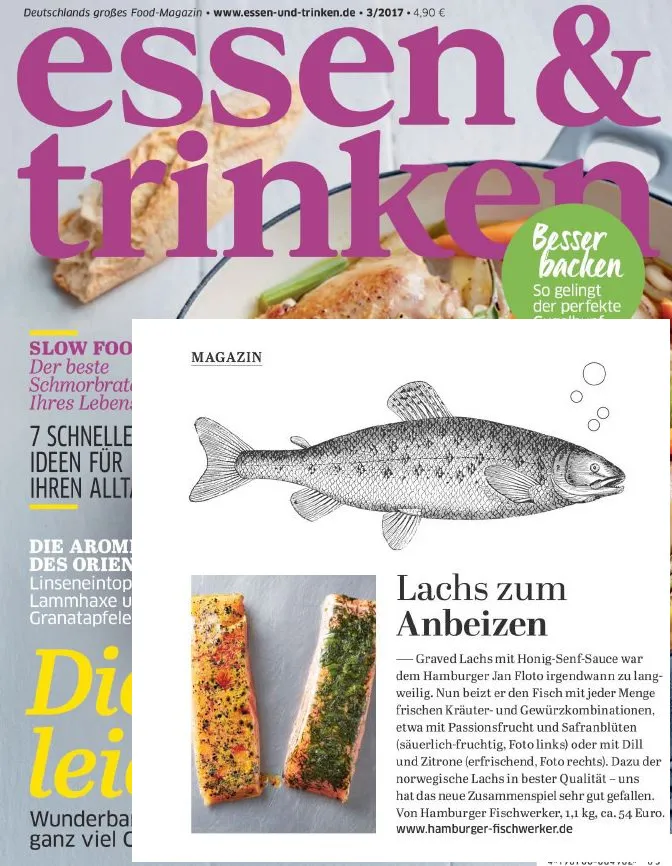 Bei den Hamburger Fischwerkern wird der frisch angelieferte Lachs in sorgfältiger Handarbeit verarbeitet. Mit einer hauseigenen Gewürzmischung nach traditionell nordischer Art wird der Fisch schonend gebeizt und veredelt – für ein intensives, dennoch ausgewogenes Aroma.